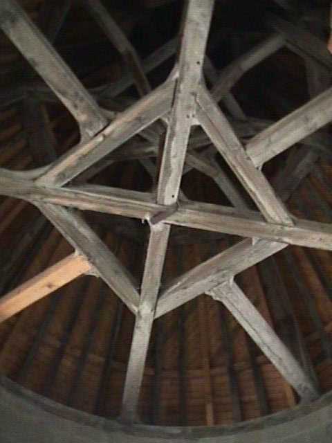 cone-shaped roof of one of the towers along the rampart surrounding the