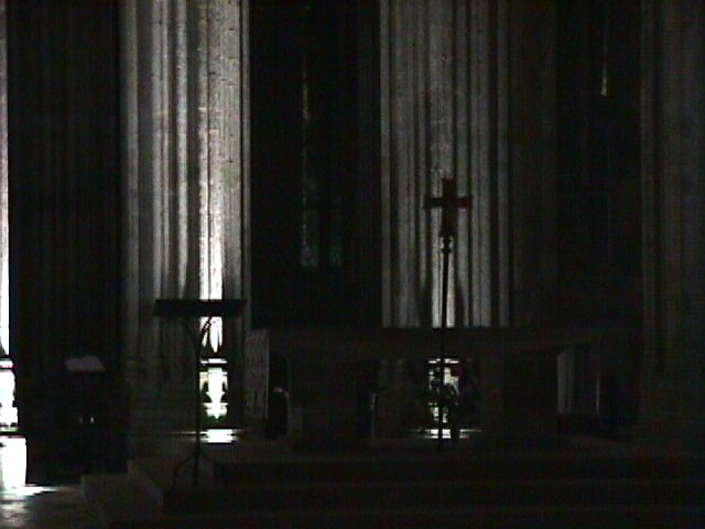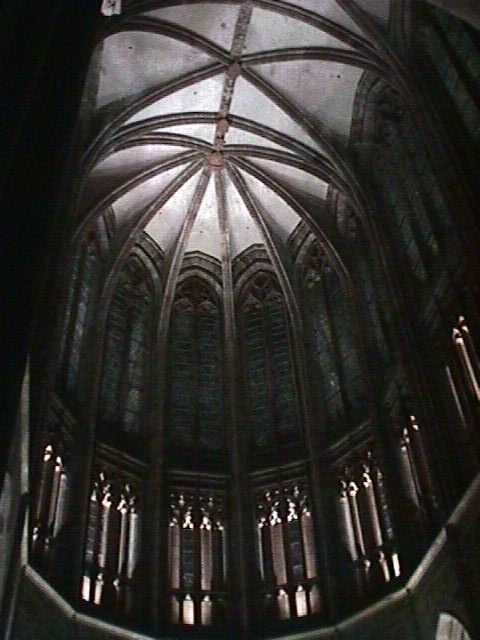 | Ceiling of the abbey chapel. | And, finally the altar. I dunno ... you can clutter up an abbey with all the modern art you like, but there's a lot to be said for a space like this being a work of art in itself. | ||