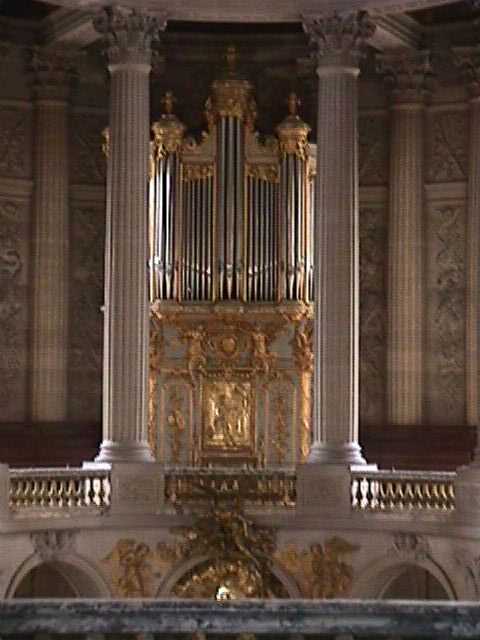 of the pipe organ in the Versailles chapel. Louis XIV attended mass here